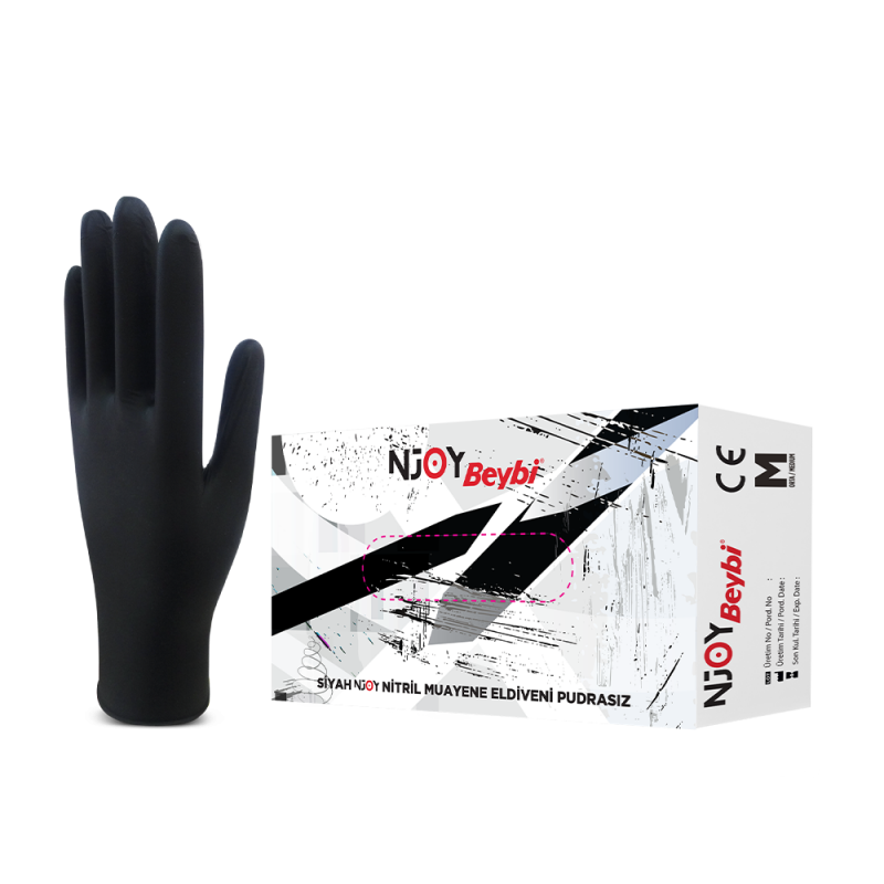 Njoy Pudrasız Siyah Nitril Muayene Eldiveni - 100'lük Kutu
